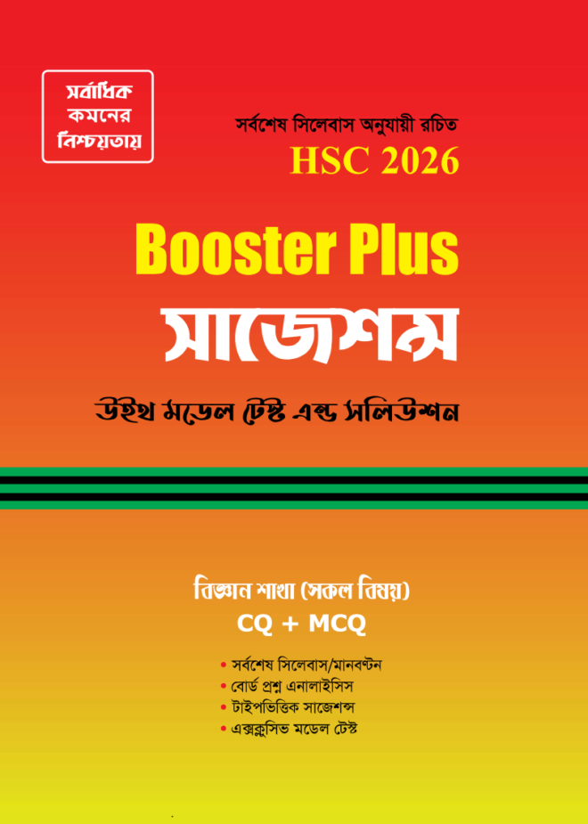 ■ ২০২৬ সালের HSC পরীক্ষার্থীদের জন্য প্রকাশিত হয়েছে ‘বুস্টার প্লাস সাজেশন্স’। বিগত সালের বোর্ড পরীক্ষা (২০২৫ থেকে ২০১৬) এবং সেরা কলেজের নির্বাচনি/প্রস্তুতিমূলক পরীক্ষার প্রশ্ন বিশ্লেষণ করে সর্বশেষ সিলেবাস অনুযায়ী বইটি রচিত। বইটি সংগ্রহ করে চোখ বুলান; নিজের প্রস্তুতিকে একটু যাচাই করে নিন, মিলিয়ে দেখুন। বিজ্ঞান শাখার সবগুলো বিষয়ের সাজেশন্সের মোট মূল্য মাত্র ৬৫০ টাকা!